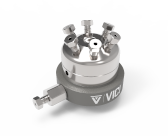 尽管阀门安装方向不会影响性能,但现场通常垂直或水平安装。底座上的 3/4" 凸台阀门的一部分适合我们的 CR4 卡环,便于表面安装。使用三通(开/关)电磁阀(VICI 产品编号:310-120VAC、-240VAC、-24VAC 或 -24VDC)将驱动空气提供给阀体。驱动气体可以是清洁空气或纯气体。6 端口和 4 端口阀门需要 50 psig 才能启动;10 端口阀需要 60 psig。