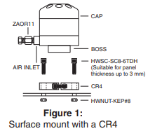 提供的进气口配件(产品编号:ZAOR11)适用于外径为 1/16" 的卡套。此配件可替换为具有 10-32 个螺纹的任何配件,例如用于 1/8"OD 聚合物卡套管的倒钩配件(产品编号:F-BF),或用于 1/8" 金属卡套管的压缩接头(产品编号:EAOR21)。